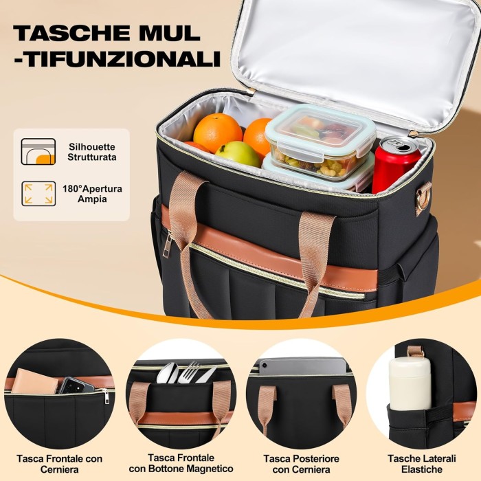 - 【Facile da Trasportare & Utilizzo Multi-Scenario】Progettata con una spallina imbottita regolabile e maniglie robuste con impugnatura morbida, questa borsa termica pranzo garantisce comfort anche quando è carica. Elegante ma pratica, è perfetta per i tragitti in ufficio, la vita universitaria, le uscite in famiglia, le gite in spiaggia o per le madri con biberon. Può anche fungere da borsa per il tiralatte o per i pannolini, rendendola una scelta regalo versatile e premurosa.