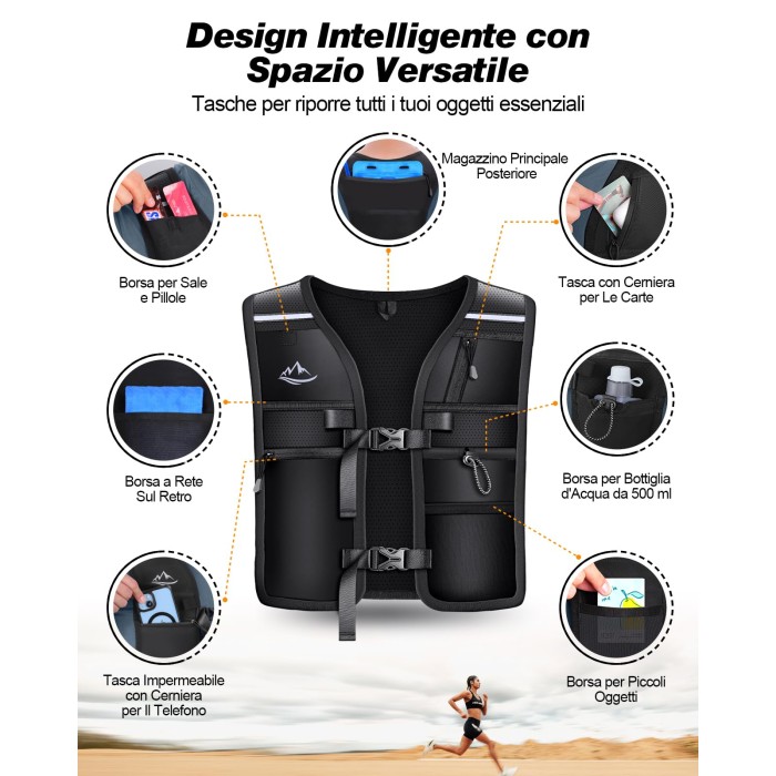 ISEYOU Gilet Running Super Leggero, Gilet da Corsa Riflettente Traspirante per Uomini e Donne, Tasche Multiple, Cintura Regolabile Running Vest per Ciclismo Escursionismo Trekking Trail